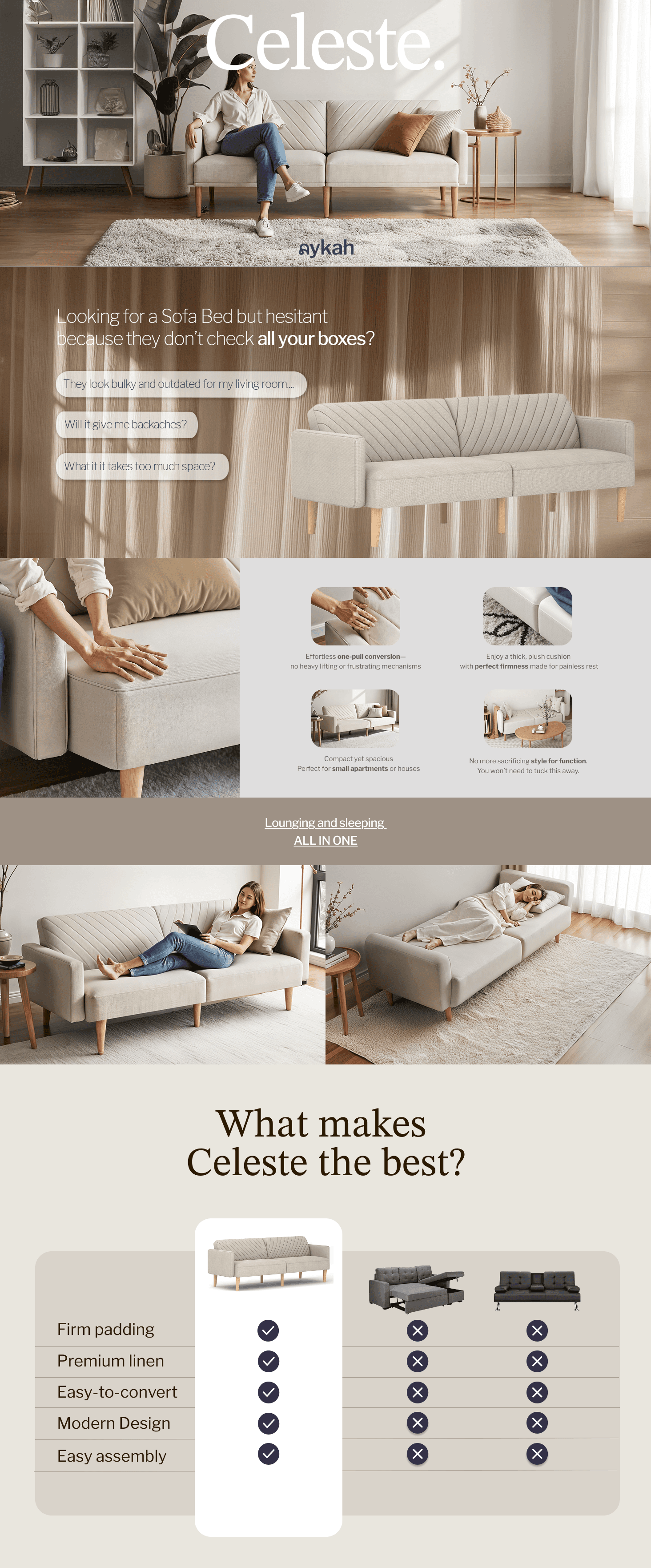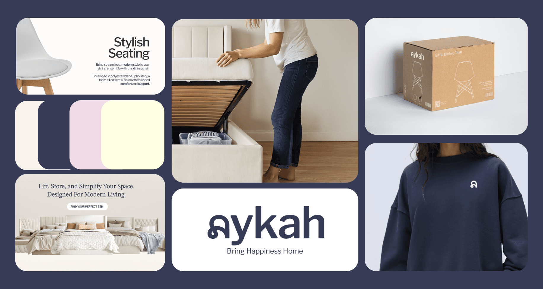 Aykah had a standout product line, but their brand experience didn’t reflect it. Their presence blended into a crowded furniture market, offering little to distinguish their value or build trust with customers. Key issues included: