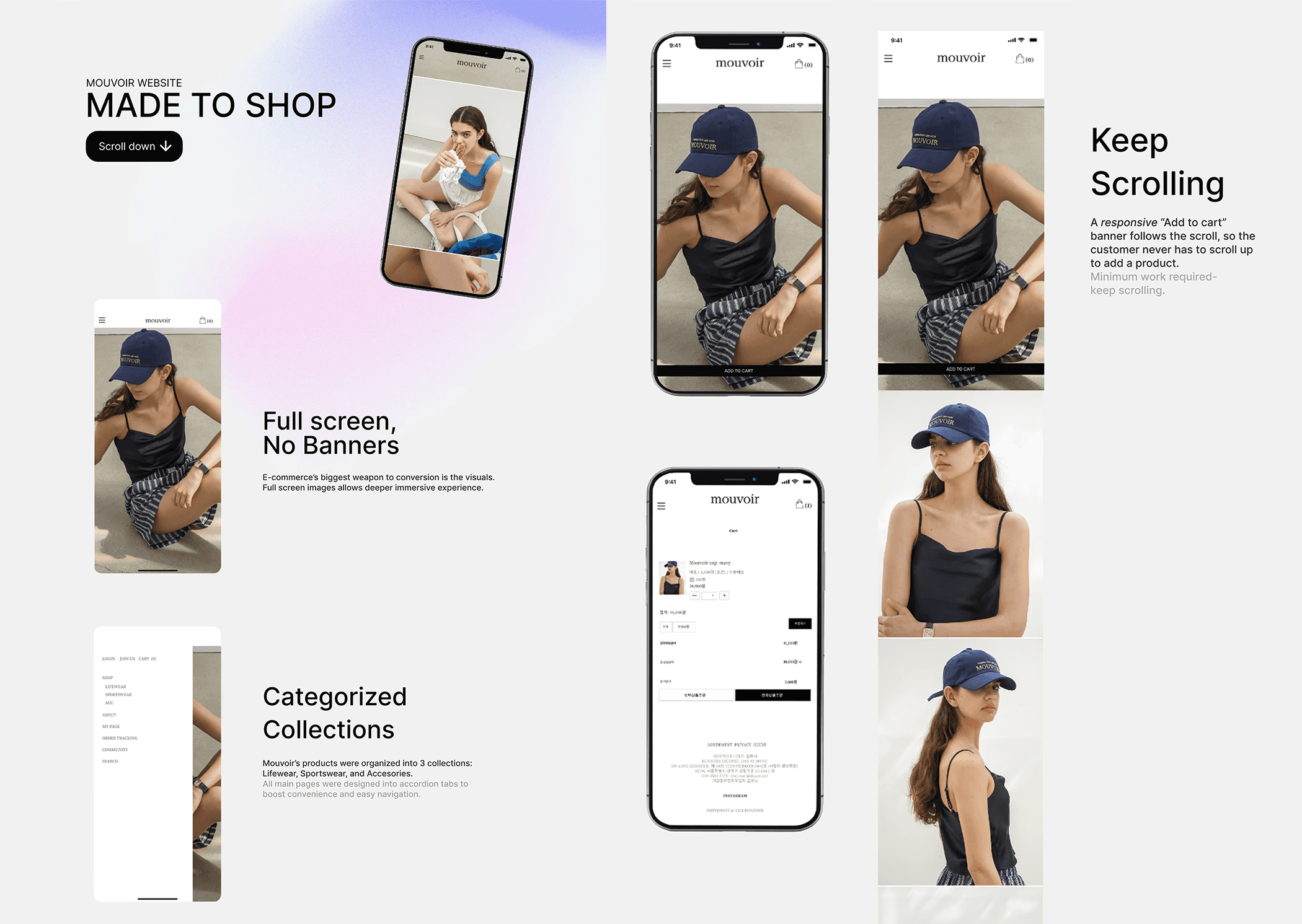 Mouvoir is a Korean fashion and movement brand that needed a digital presence to match the elegance and intentionality of their work. I was brought on to design and develop a website that visually communicated their values, showcased their new capsule collection, and introduced the brand’s refined aesthetic to the public for the first time.